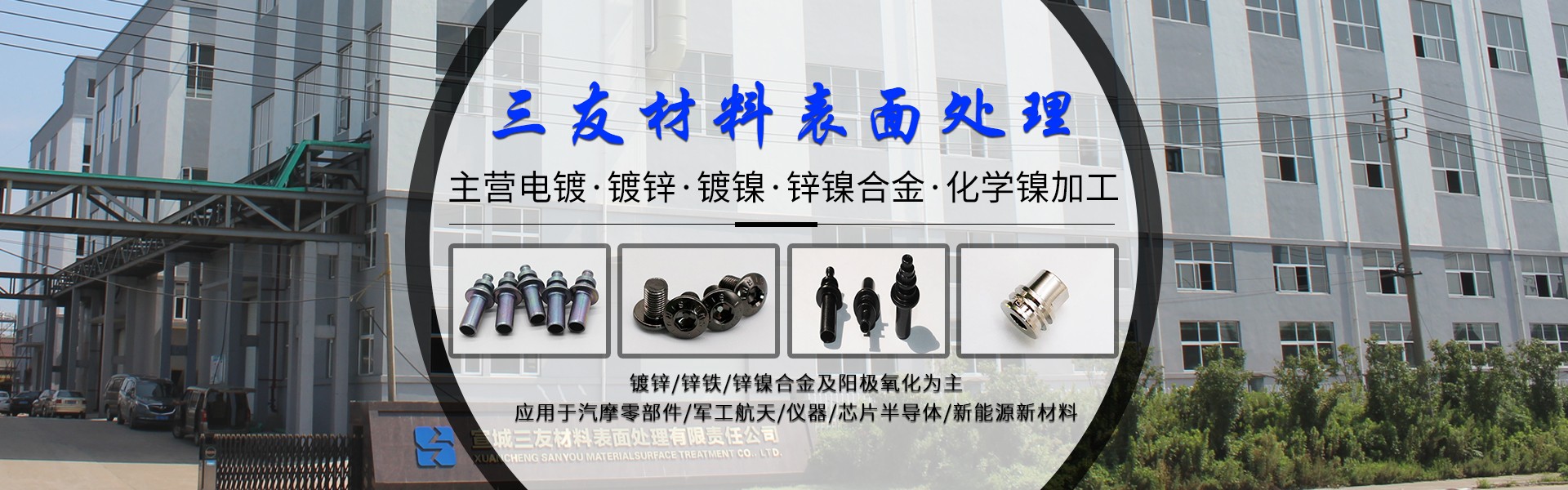 公司產(chǎn)品以鍍鋅及鋅鐵和鋅鎳合金及陽極氧化為主,立足服務(wù)于汽摩零部件,軍工航天,儀器,芯片半導(dǎo)體,新能源新材料,衛(wèi)浴箱包等行業(yè)用戶。...